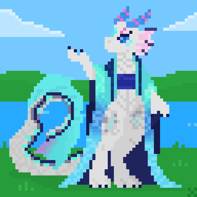 She/They A felinoid dragon who in a past life ruled as queen in a sky archipelago. She has a deep affinity for wind, storms, and life. She loves to dance and paint.